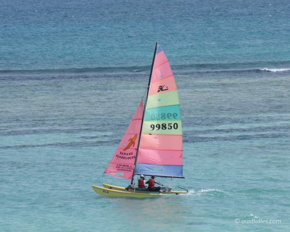 Pratique de la voile en catamaran dans les eaux turquoise du lagon de Saint-François, en GuadeloupeLa marina de Saint-François constitue un point de départ privilégié pour rejoindre la
