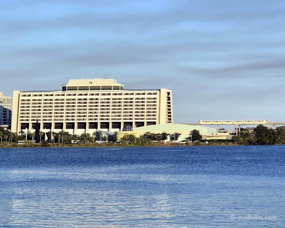 Prenez le temps de vous promener dans les allées extérieures pour découvrir la plage de sable blanc et profiter d'une vue imprenable sur le lagon, les autres hôtels Disney et le parc Magic Kingdom.