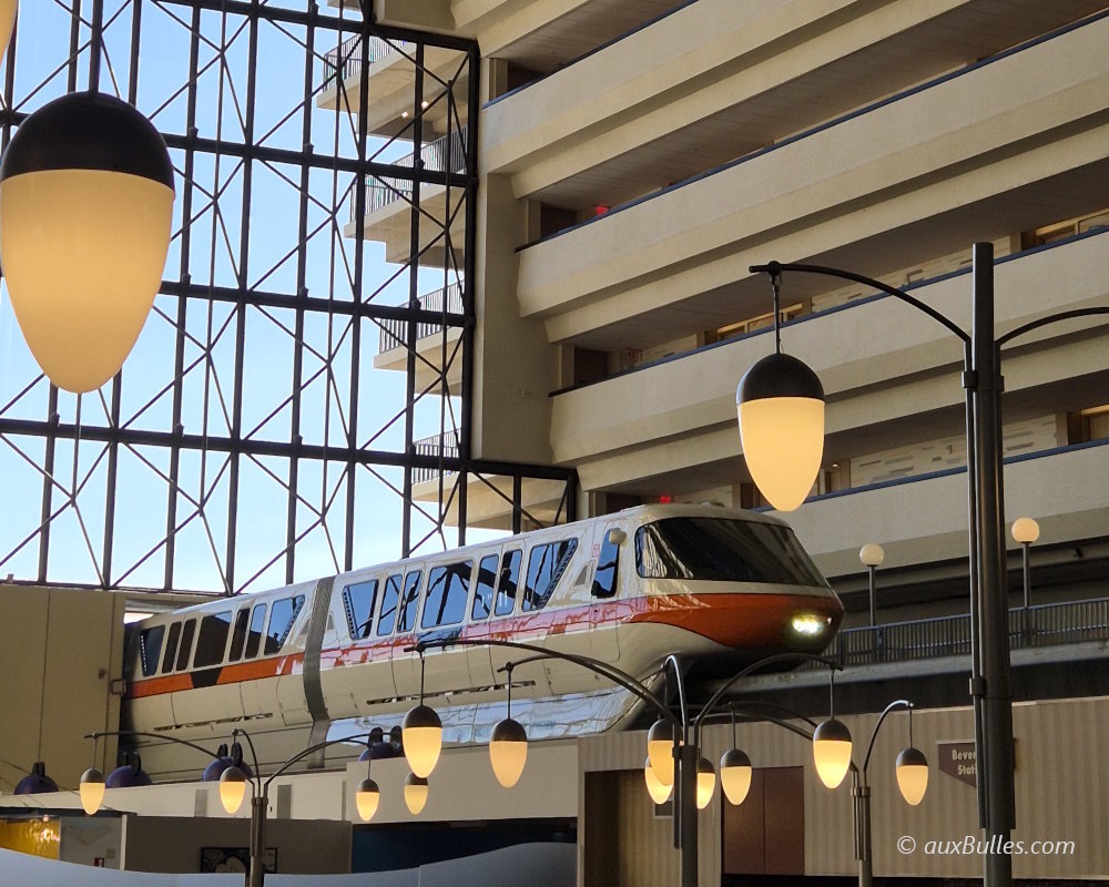 Profitez d'une pause déjeuner dans le hall emblématique de cet hôtel, traversé par le monorail. L'ambiance y est futuriste, en total contraste avec les hôtels plus classiques.